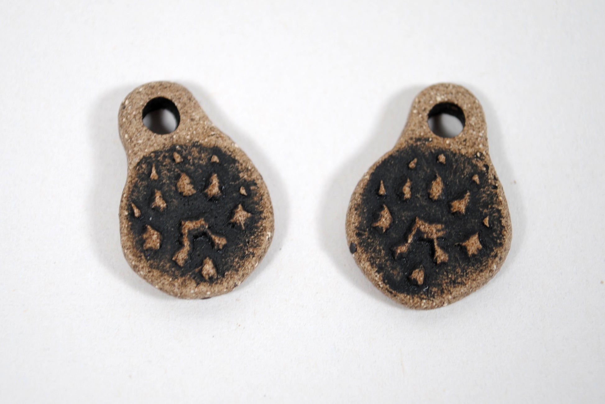Made with a carved cork stamp, this stoneware pendant is perfect for any ferret lover. This pendant was fired to cone 6 and given a black underglaze wash to make the track pop. That's it! Made of tough stoneware, the clay has both the look of real stone and its hardiness.