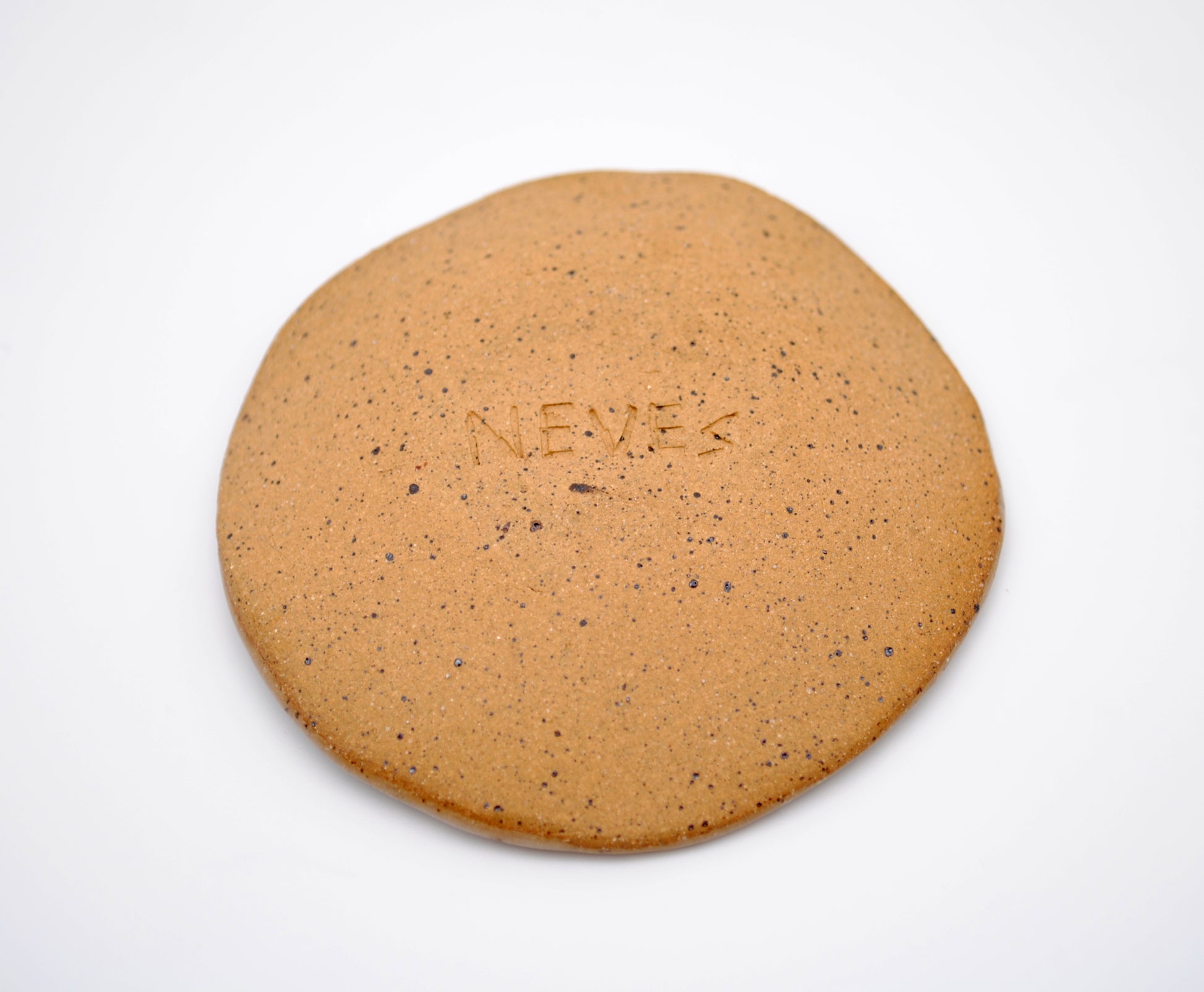 This small trinket dish is made of speckled stoneware clay, with black slip that was carved by hand to reveal the image of a bear paw and salmon swimming around the rim.
