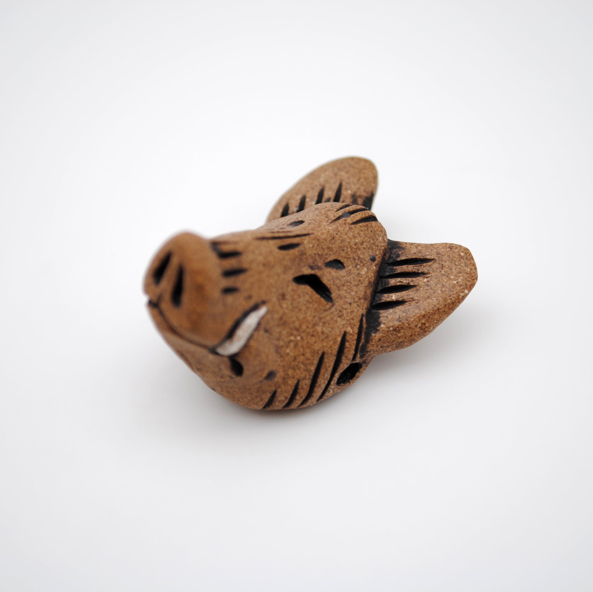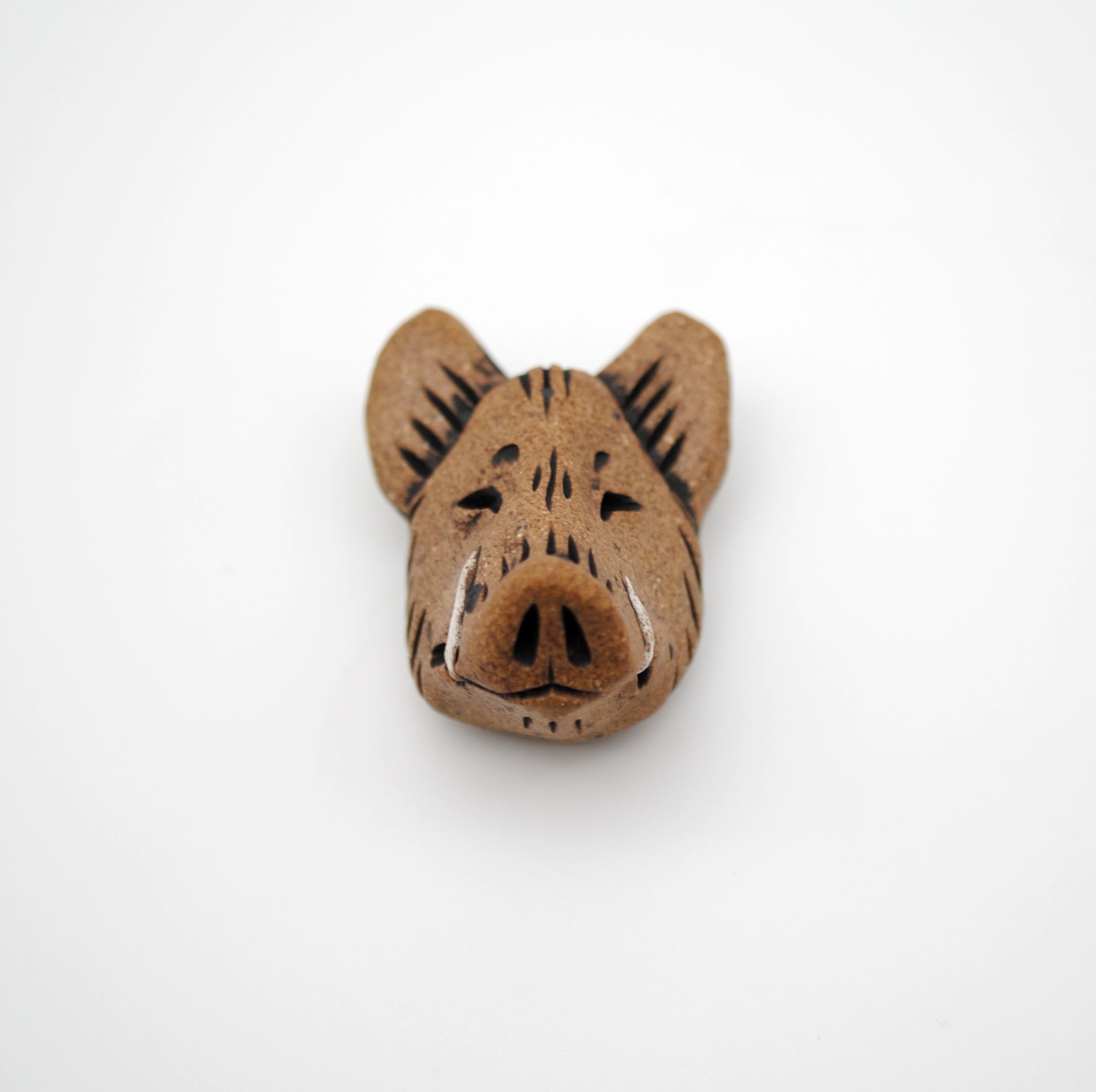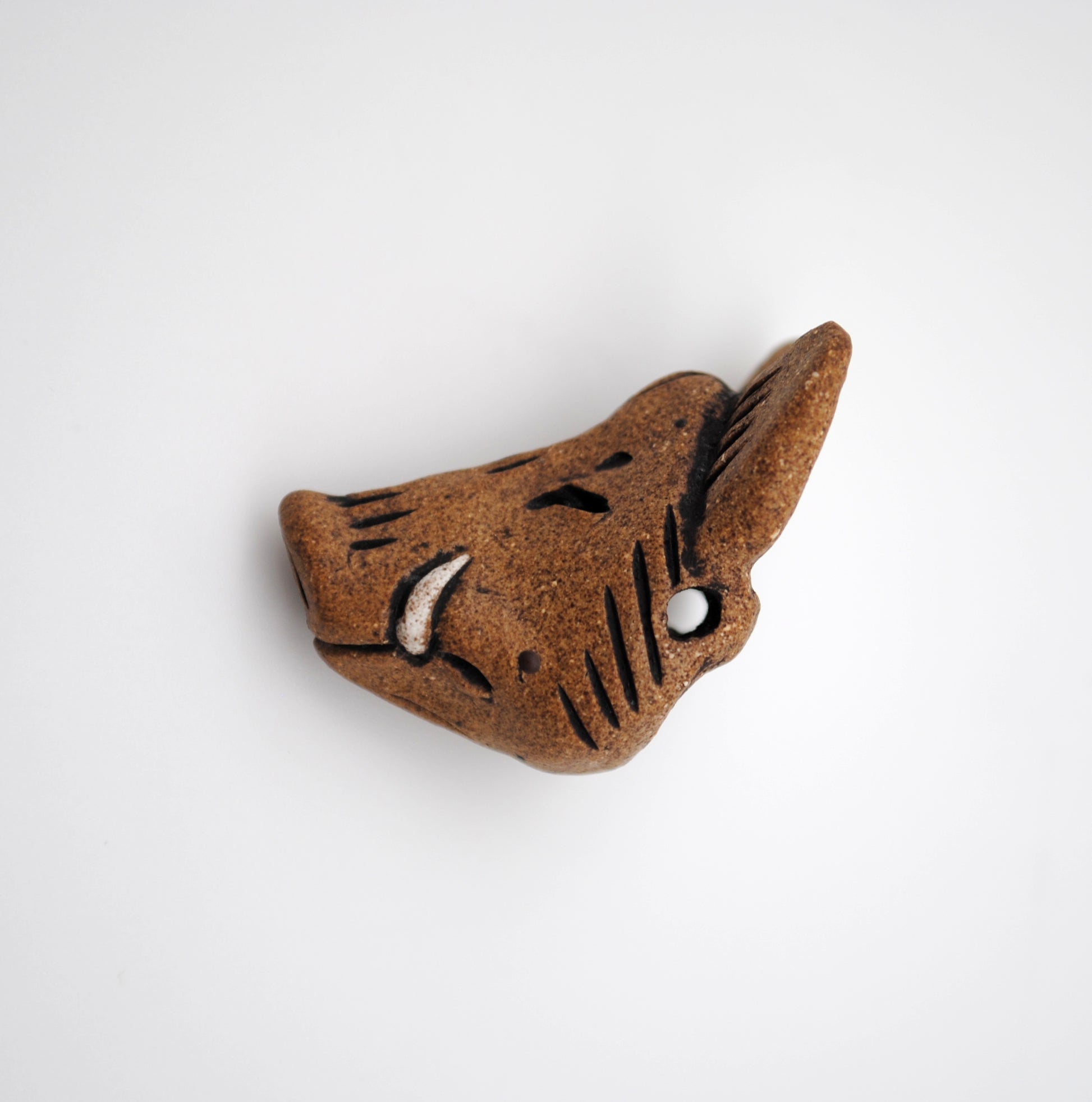 Hand sculpted and one of a kind, this wild boar head pendant is made for you! Sculpted from stoneware clay with accents of underglaze, then fired to cone 6.