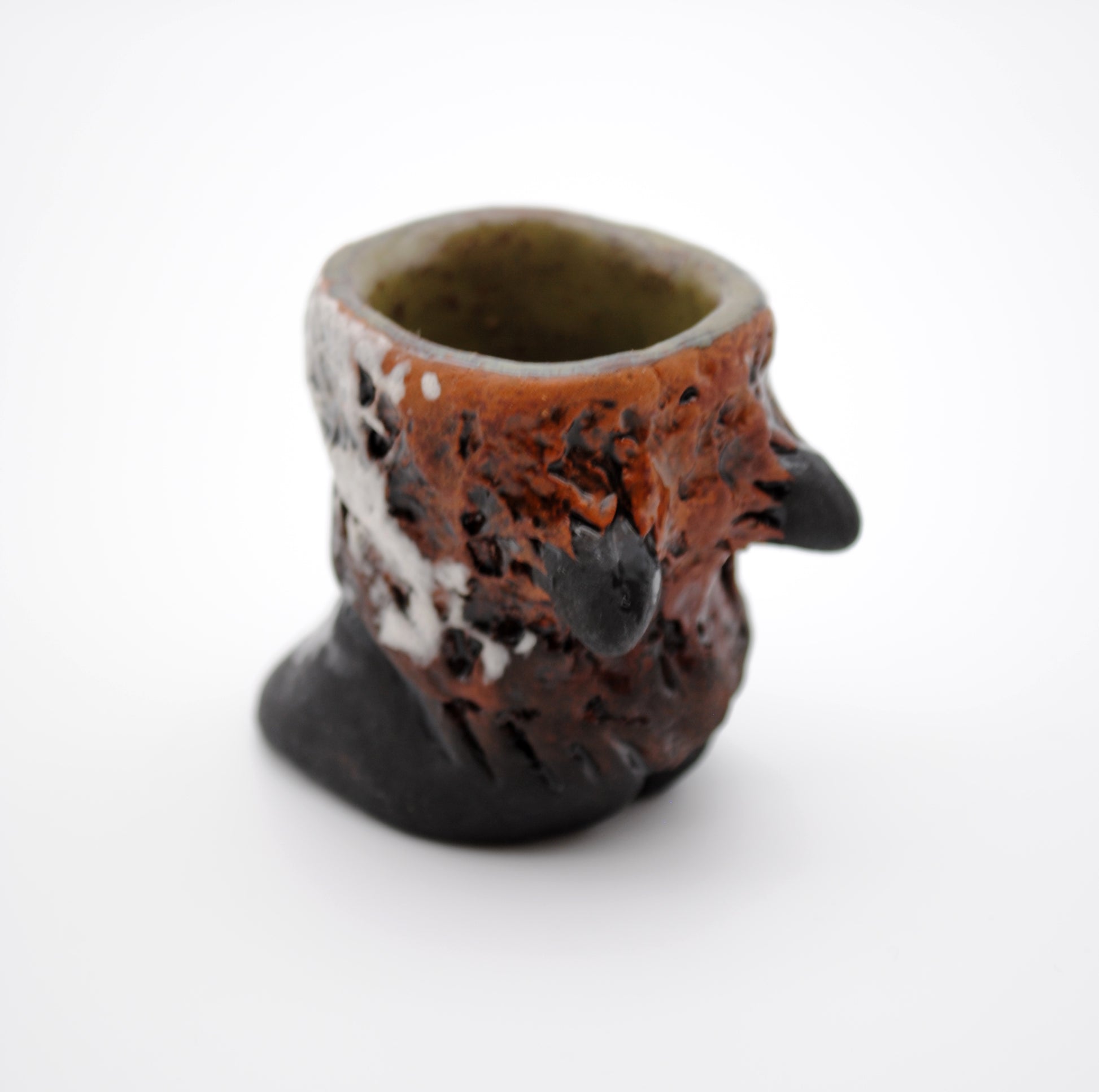 Sculpted by hand from red earthenware clay with hand painted glaze to bring it to life. Treated with liquid quartz to prevent staining. Food safe and ready to party! Works great for storing toothpicks, q-tips, etc. as well. This glass is OOAK!