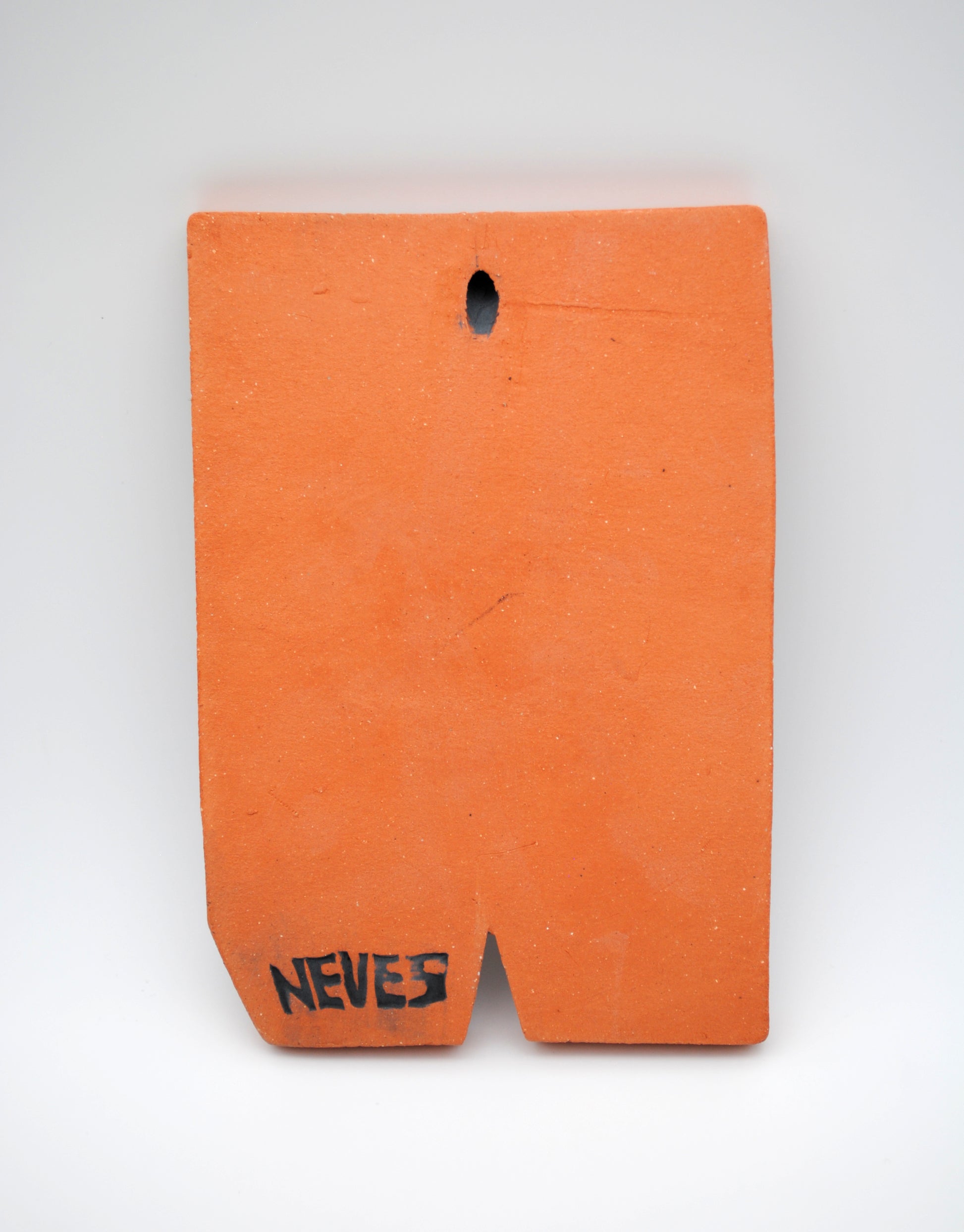 Wall tile made by pressing a hand-carved linoleum block into terracotta clay. Glazed by hand and fired to cone 04. Tile features two werewolf figures with their child, one with transmasc top surgery scars.