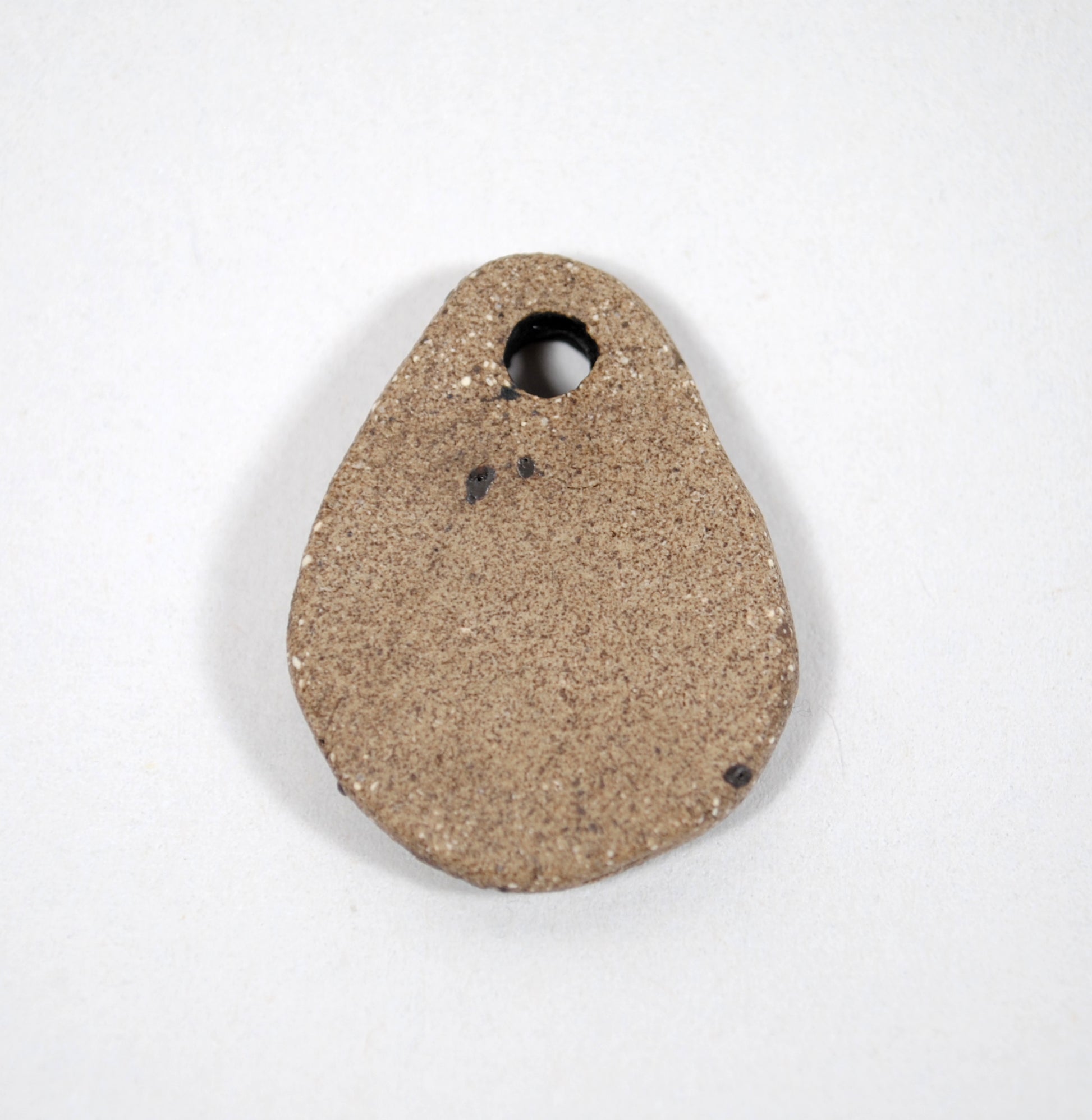 Made with a carved cork stamp, this stoneware pendant is perfect for any raccoon fan. This pendant was fired to cone 6 and given a black underglaze wash to make the track pop. That's it! Made of tough stoneware, the clay has both the look of real stone and its hardiness.