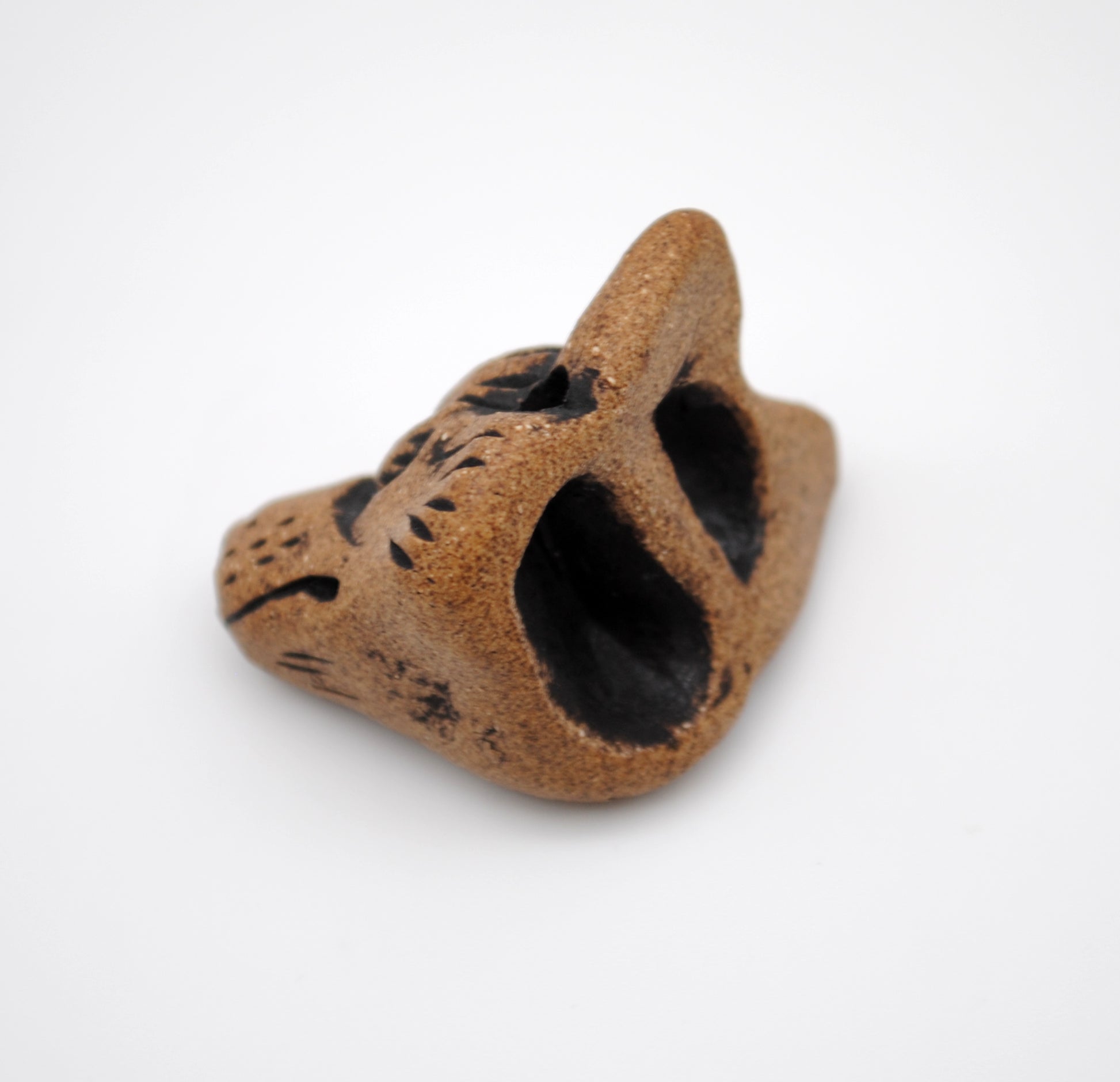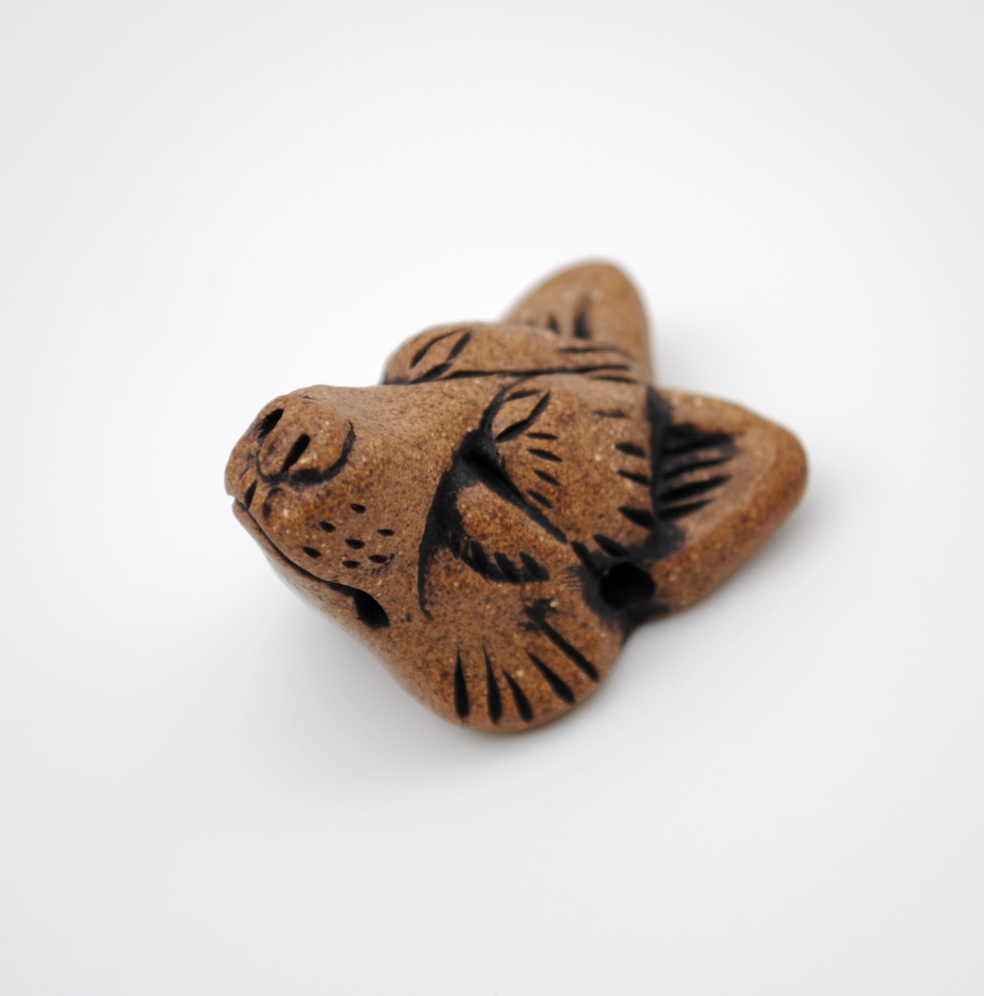 Hand sculpted and one of a kind, this wolf head pendant is made for you! Sculpted from stoneware clay with accents of underglaze, then fired to cone 6.